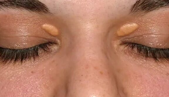 Es una acumulación de grasa debajo de la piel, debajo del párpado superior y/o inferior, de color amarillento. Pueden ser síntoma de colesterol alto.